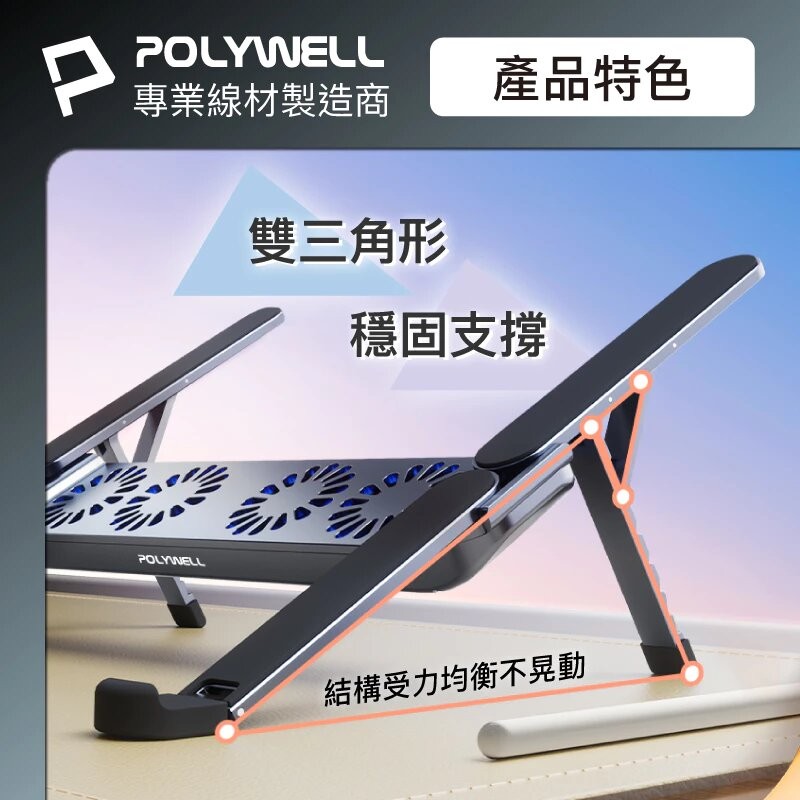 - 4顆散熱風扇,為筆電或平板電腦快速散熱