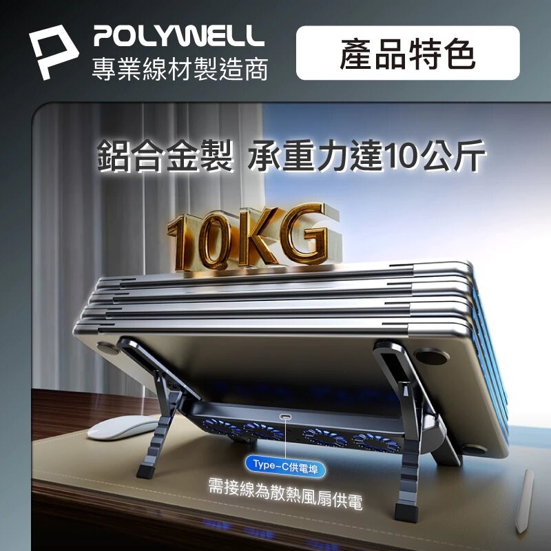- 本產品為鋁合金製,承重力達10公斤,穩固支撐筆電裝置