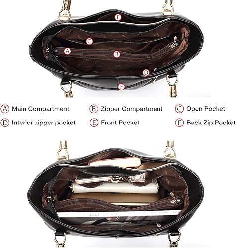 - 【Structure design 】 - Our large leather handbag comes with 2 main compartments, 1 zipper compartment, 2 internal open pockets, 1 inner zipper pocket and 1 external zipper pocket, so our tote purse have a lot of room for your daily necessities. The roomy interior can hold your iPad, cell phone, A4 Magazine, wallet, important papers, etc.