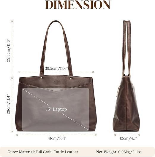 - Large Capacity: This leather tote bag for women measures 16.14 × 4.72 × 11.42 inches and weighs 2.1 lbs, offering a spacious interior that fits all your daily essentials for travel, commuting, work, outings, and daily errands