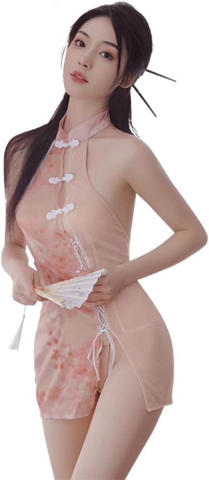Women's Sexy Lace Cosplay Underwear Printed Split Chinese Cheongsam Lingerie Pajamas