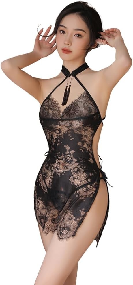 Design: Vintage lace cheongsam, tassel stand collar buckle, back strap design, double slit, full of temptation